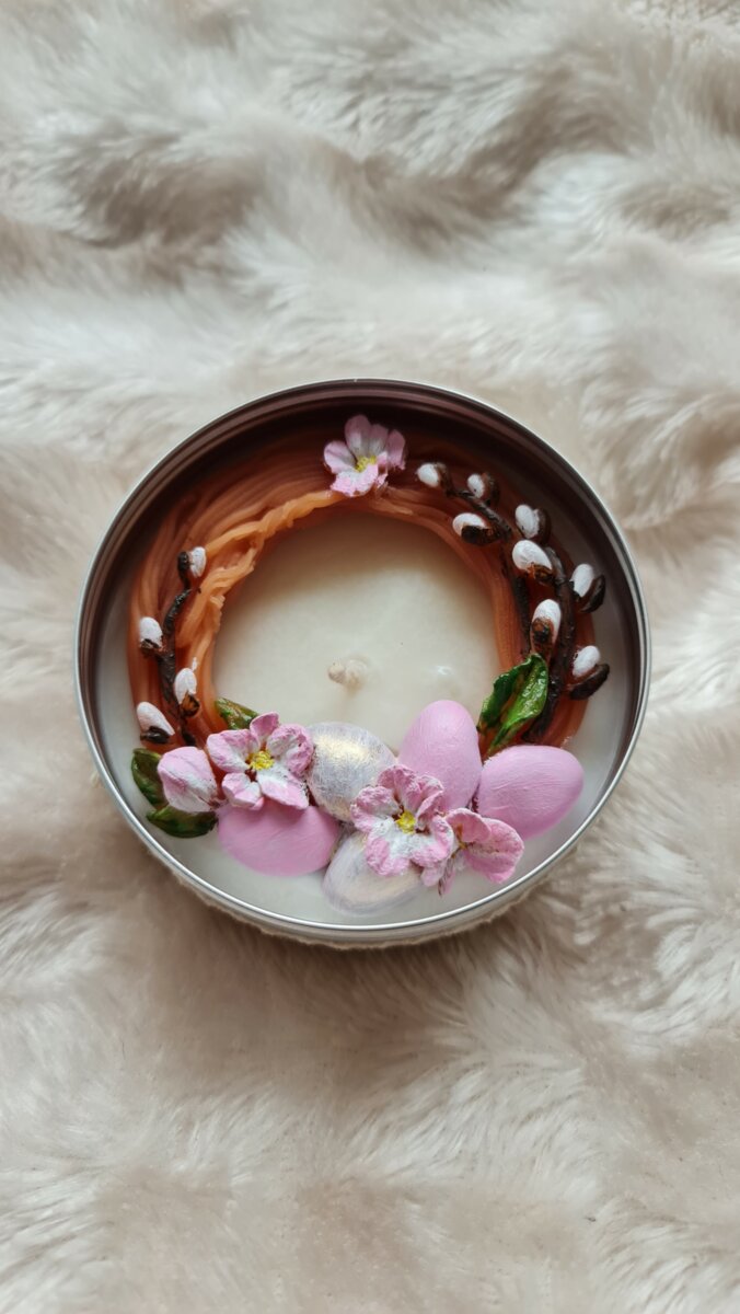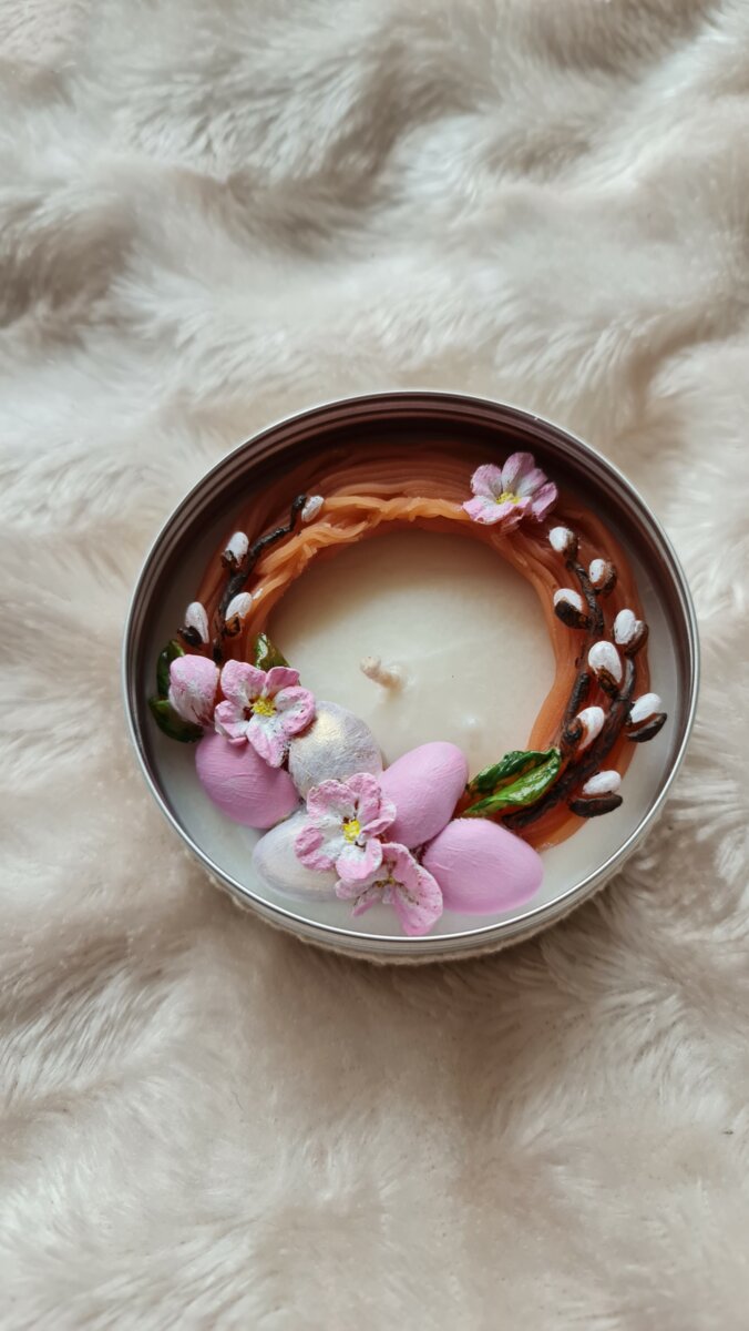 Аромасвічка дизайнерська свічка ручної роботи з соєвого воску в металевій баночці, діаметр 9 см.
