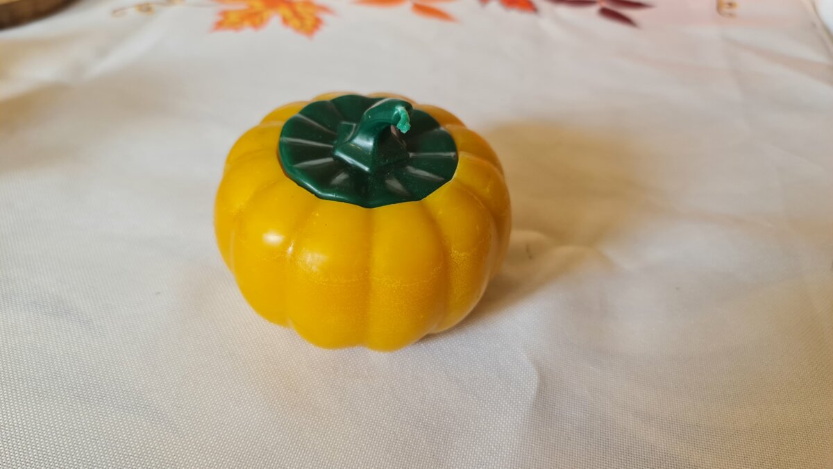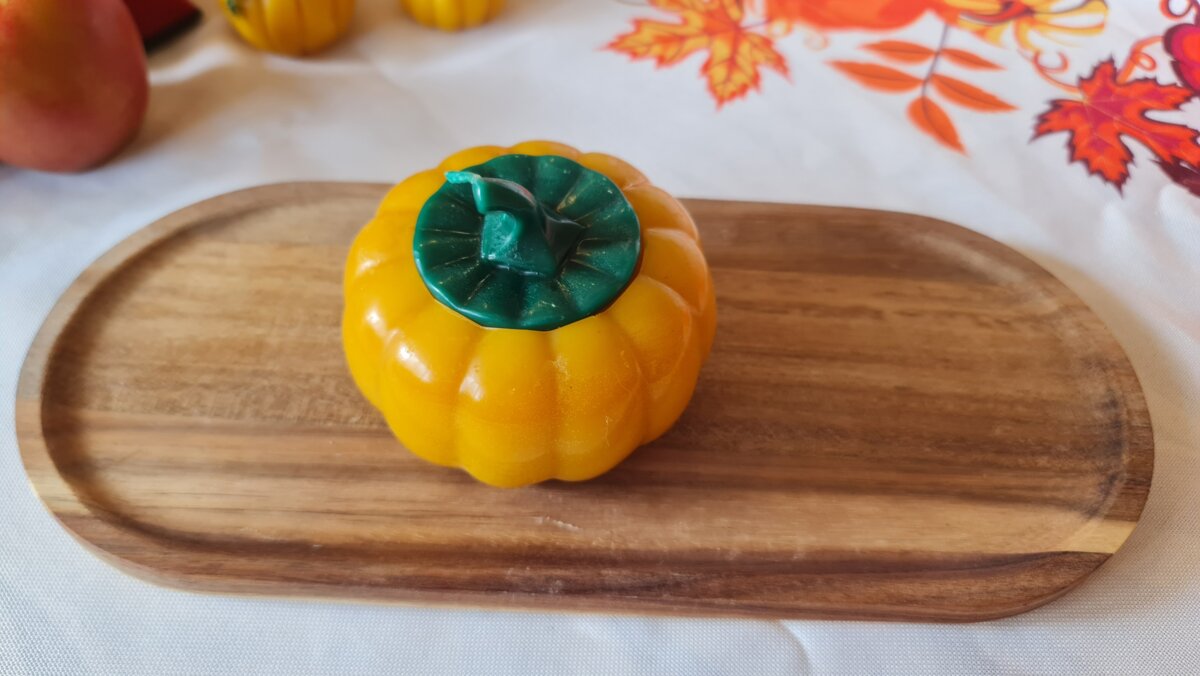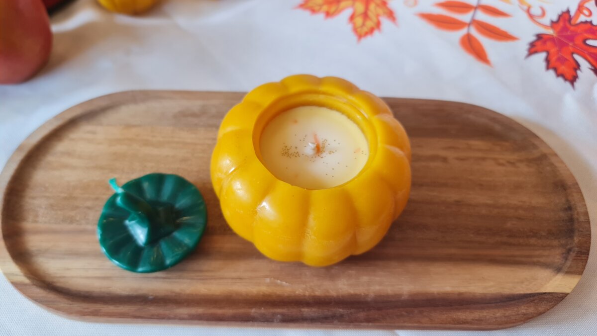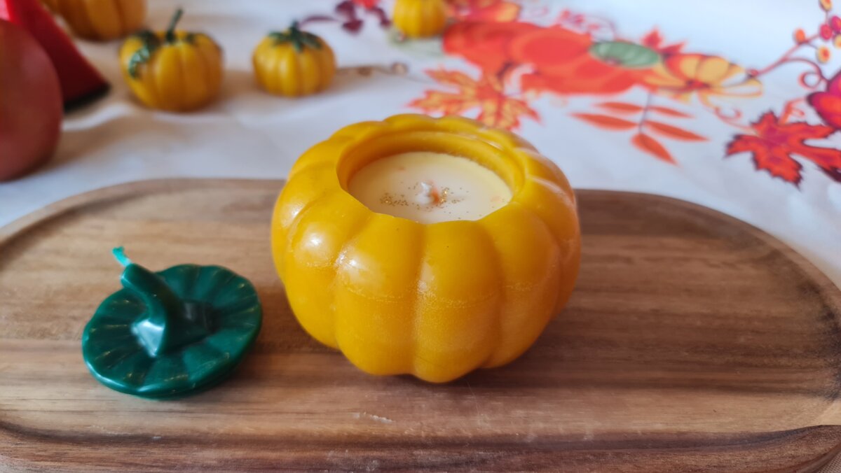 Аромасвіча гарбузик великий в кашпо з бджолиного воску і ароматом гарбузового пирогу