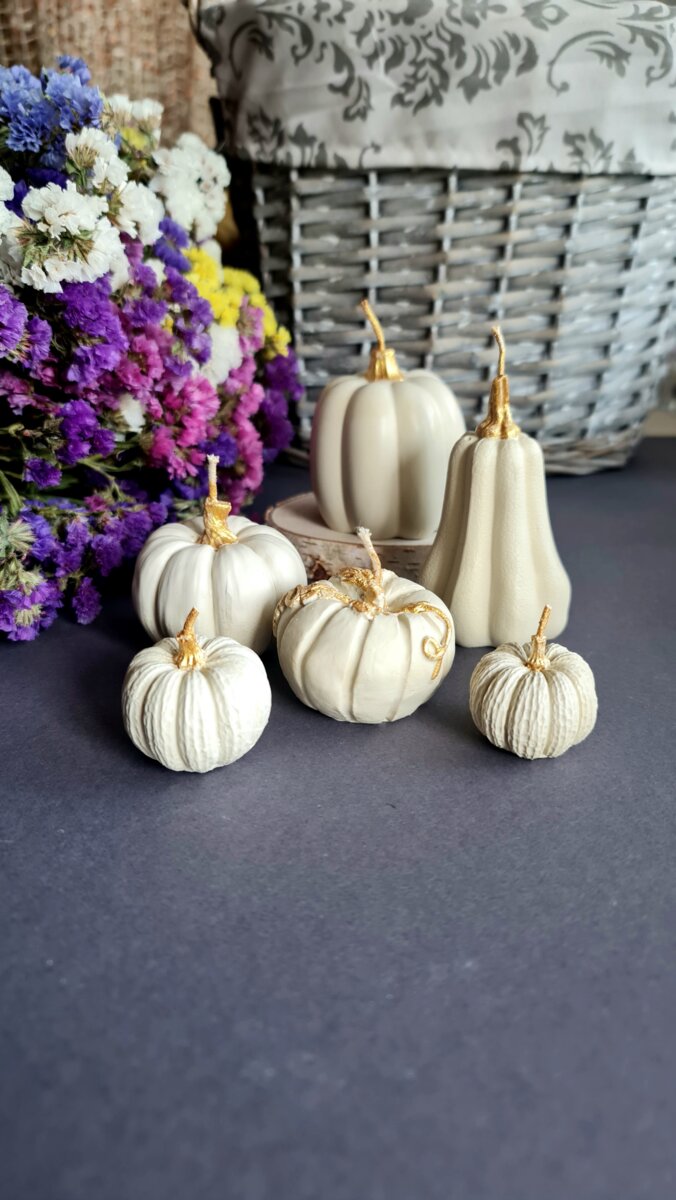 Набір свічок гарбузиків молочно-білого кольору, 6 шт