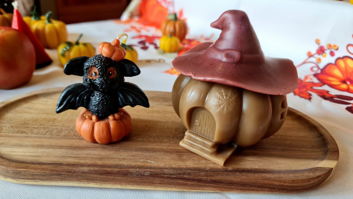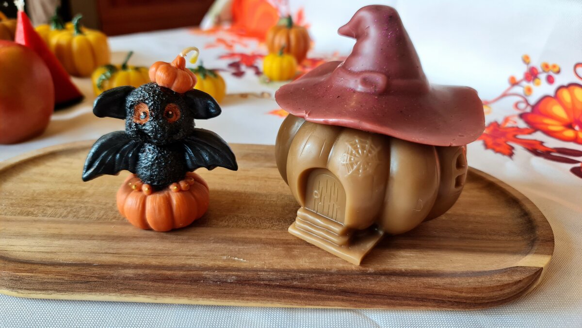 Набір арома свічок з бджолиного воску. В наборі 2 свічки: кажанчик - оберіг врожаю, гарбузик-будиночок