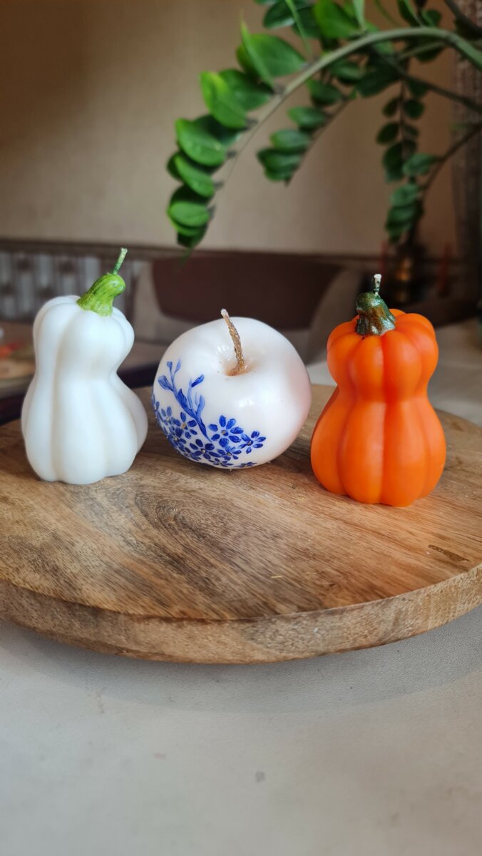 Набір з 2 свічок гарбузиків і 1 яблучка з ручним розписом. соєвий віск