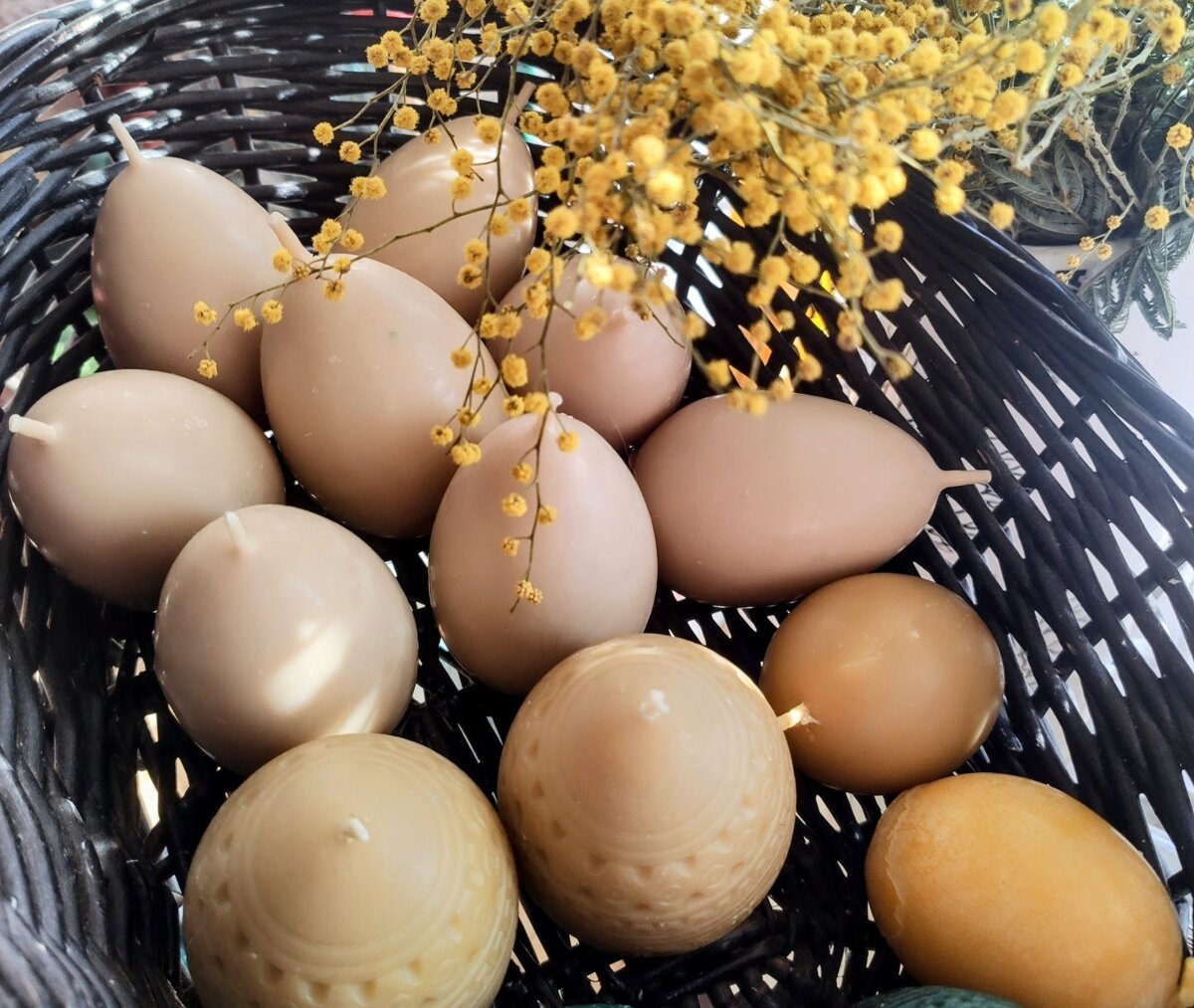 Макані свічки яєчка з бджолиного воску (білі з жовтим жовтком) (6см висота, 4,5см діаметр)