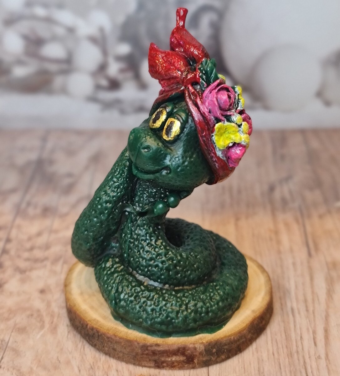 Свіча скульптурна змія Солоха - символ 2025 року. Бджолиний віск, висота 7 см, діаметр 5 см