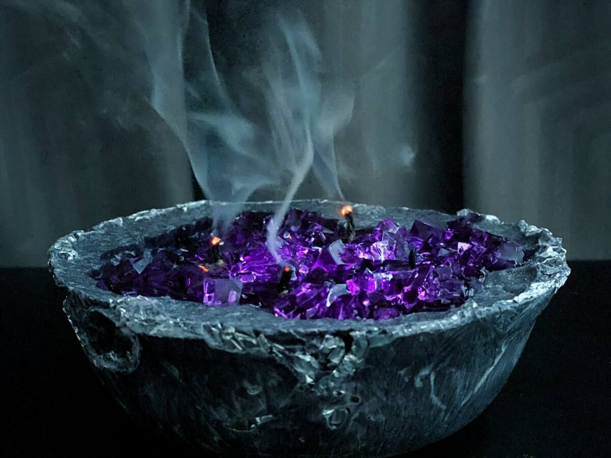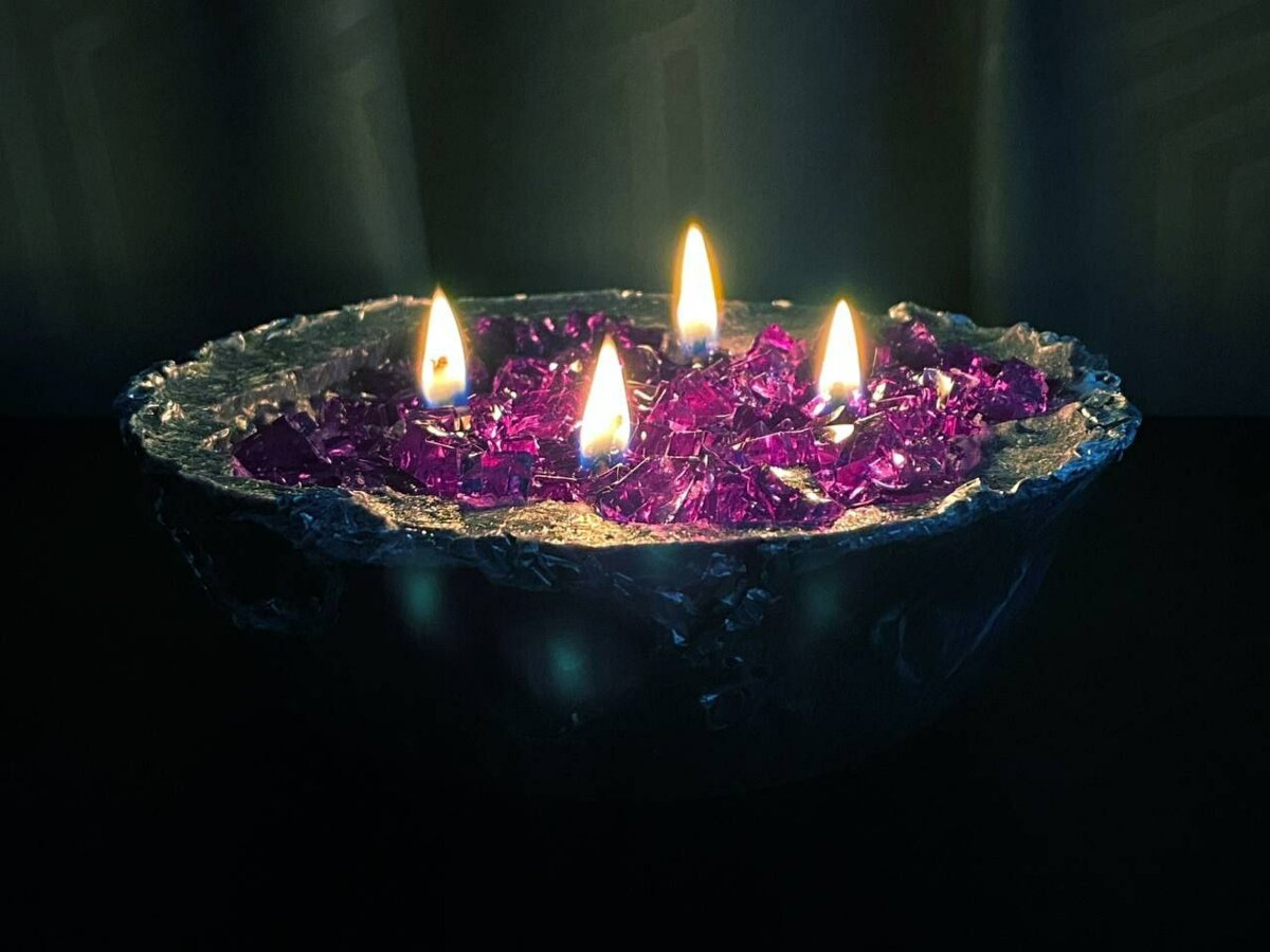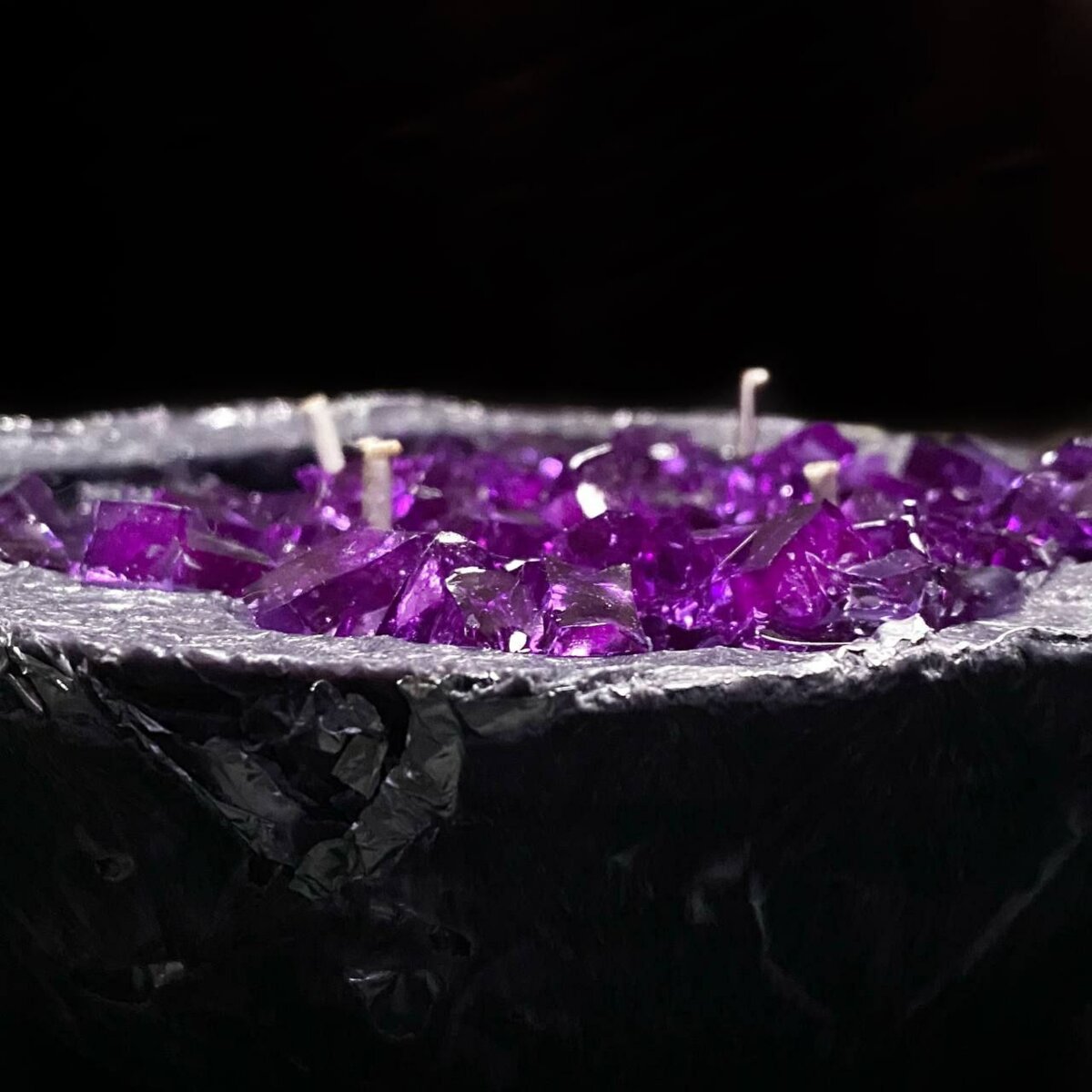 Свіча парфумована інтер'єрна "Жеода аметисту". Створена з воску. Ручна робота. Вага свічки 500-700 гр