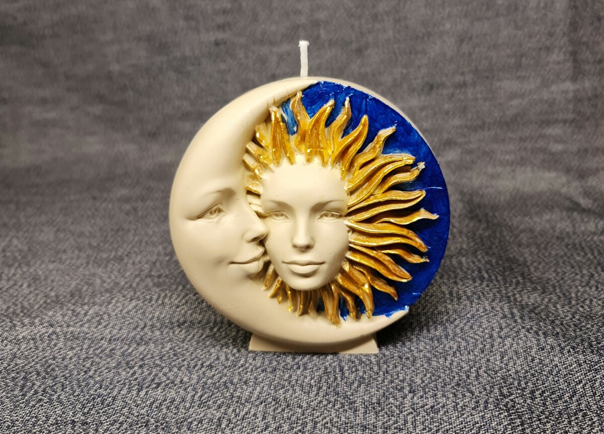 Свіча Сонце та місяць - символ поєднання двох начал чоловічого та жіночого. Скульптурна свіча створена з натурального бджолиного воску. Діаметр 98мм