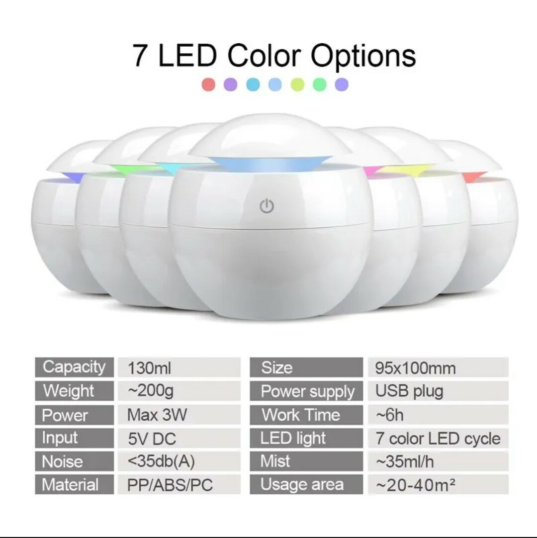 Зволожувач повітря, ультразвуковий ароматичний диффузор, обсяг 130 мл, USB живлення